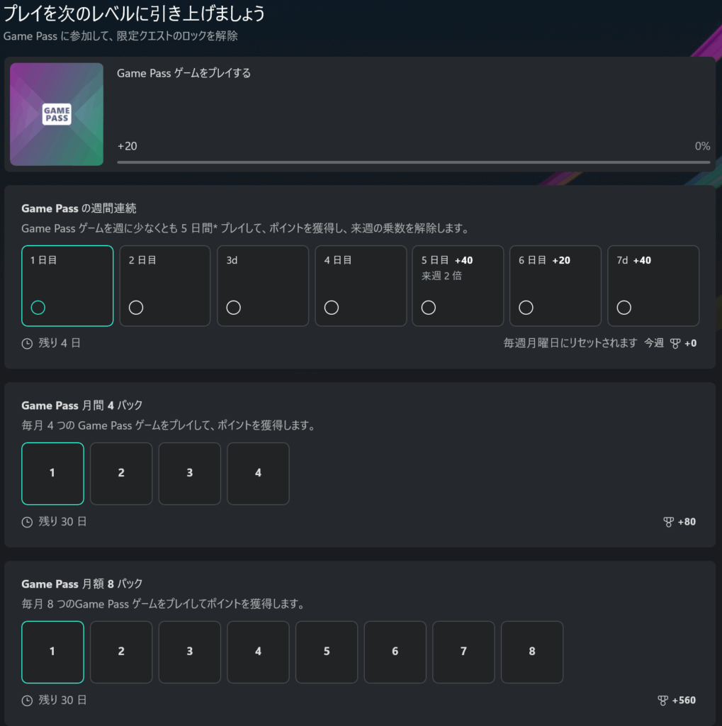 ゲームパスクエストの説明と合わせてリワードを貯める方法についても説明するぞ。